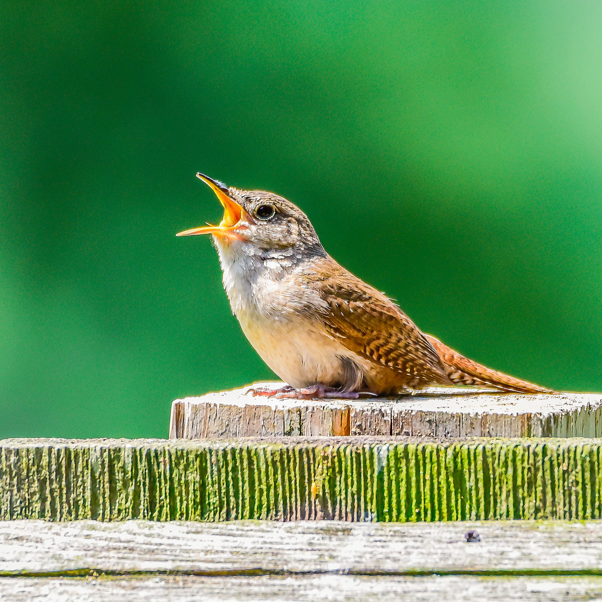 A plain brown bird with an effervescent voice, the House Wren is a common backyard bird over nearly the entire Western Hemisphere. Listen for its rush-and-jumble song in summer and you’ll find this species zipping through shrubs and low tree branches, snatching at insects. House Wrens will gladly use nestboxes, or you may find their twig-filled nests in old cans, boots, or boxes lying around in your garage. The above description is provided from: www.allaboutbirds.org